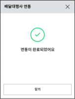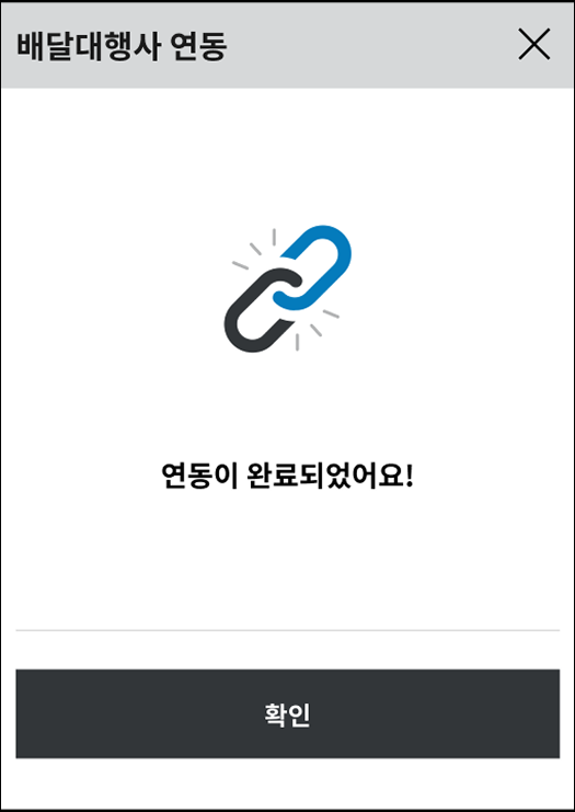 연동이 완료되었습니다. 연동한 배달대행사를 바로 이용해 보세요. (연동된 배달대행사가 확인이 안된다면 포스 프로그램을 재시작해주세요)