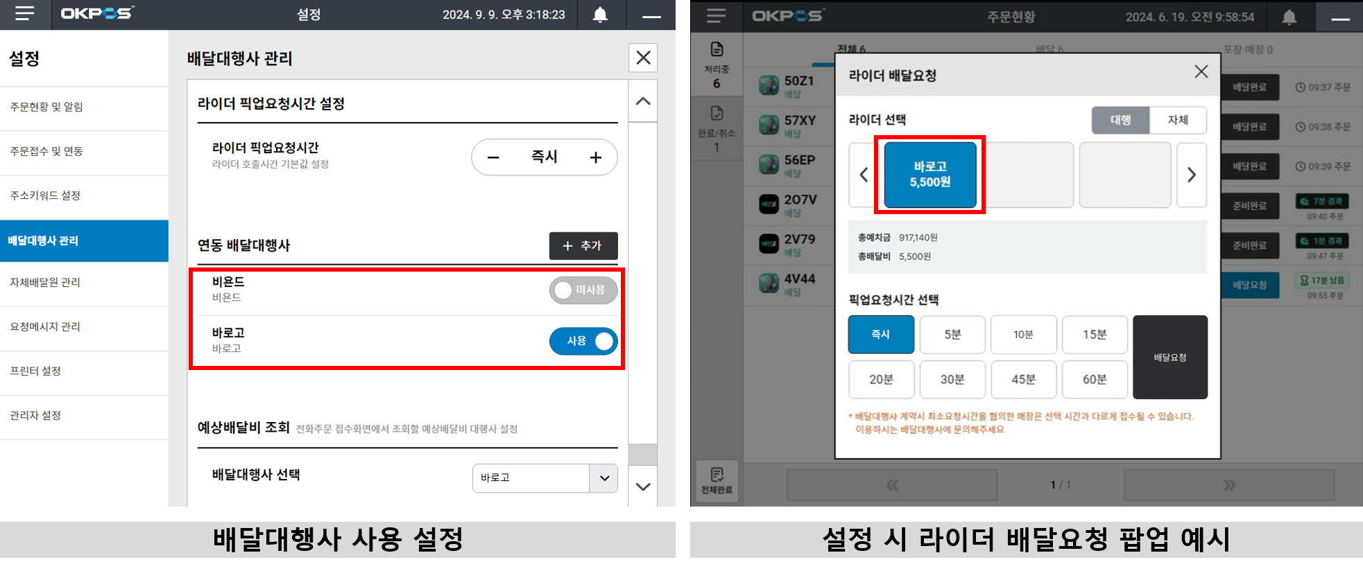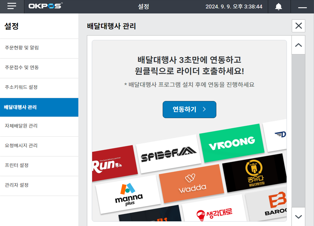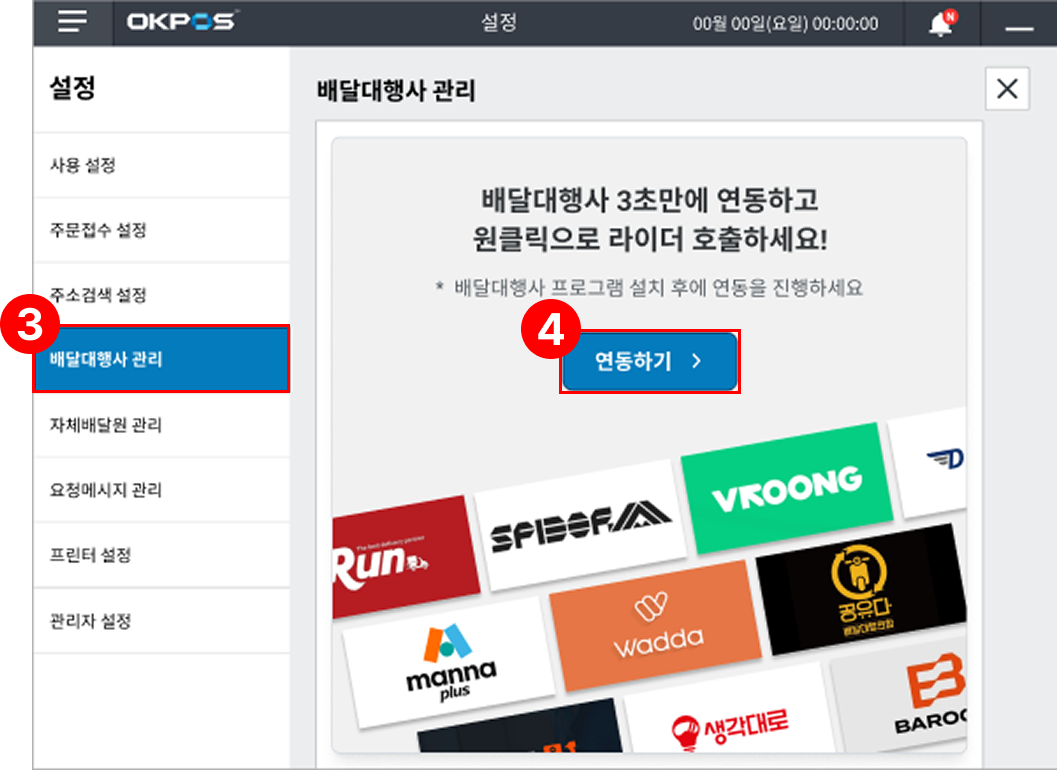 2. 설정 > [배달대행사 설정] 메뉴를 선택합니다