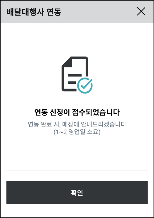 일부 대행사는 연동 승인이 필요해요. 정상 접수되었으니, 1~2영업일 내에 승인 후 안내드릴게요