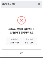 이용 중인 배달대행 프로그램과 연동신청한 배달대행이 일치하는지 재확인해주세요. 이후에도 문제가 지속되면 고객센터에 문의해주세요.