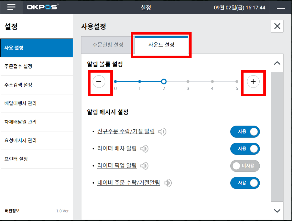 2 . 설정 > [자체배달원 관리] 메뉴를 선택합니다