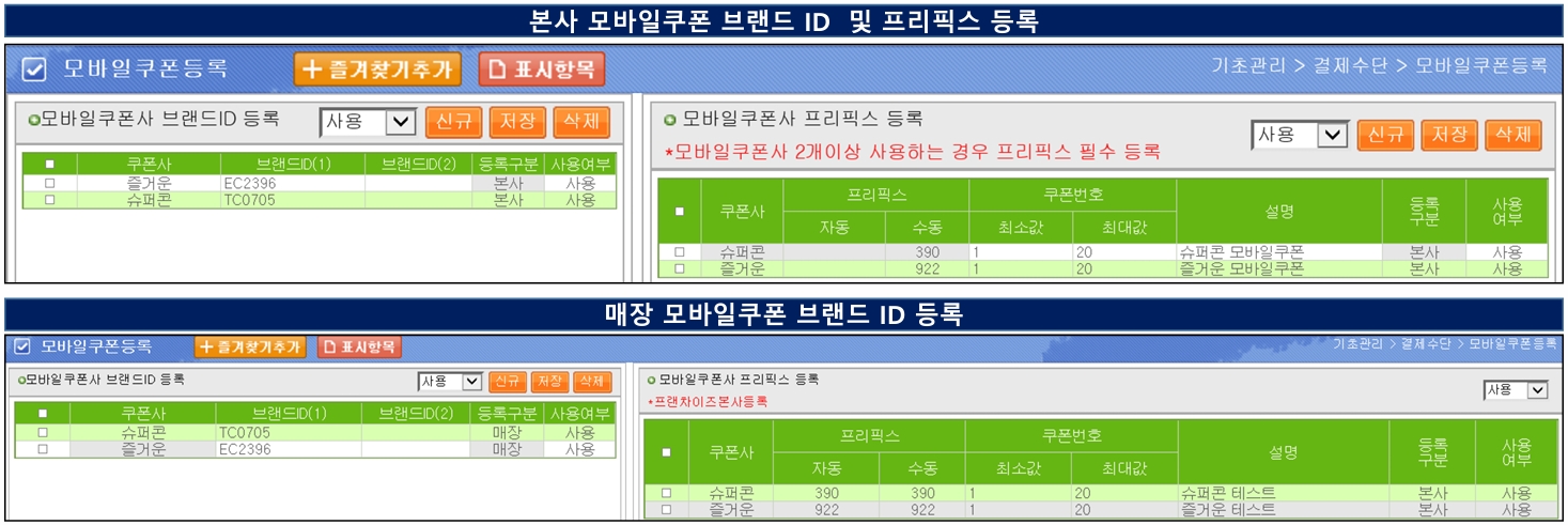 모바일쿠폰 브랜드ID와 프리픽스 번호는 쿠폰사에 문의해 주세요.
