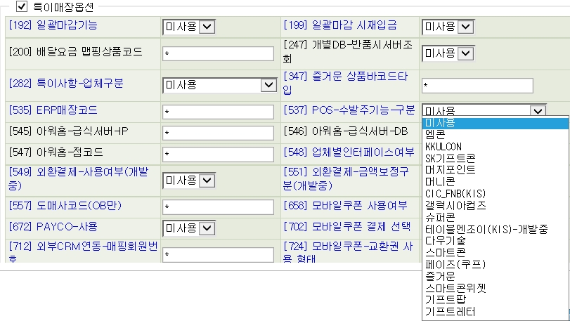 ④ [658] 모바일쿠폰 사용여부 설정 : 설정할 쿠폰업체를 선택후 저장 해주세요.