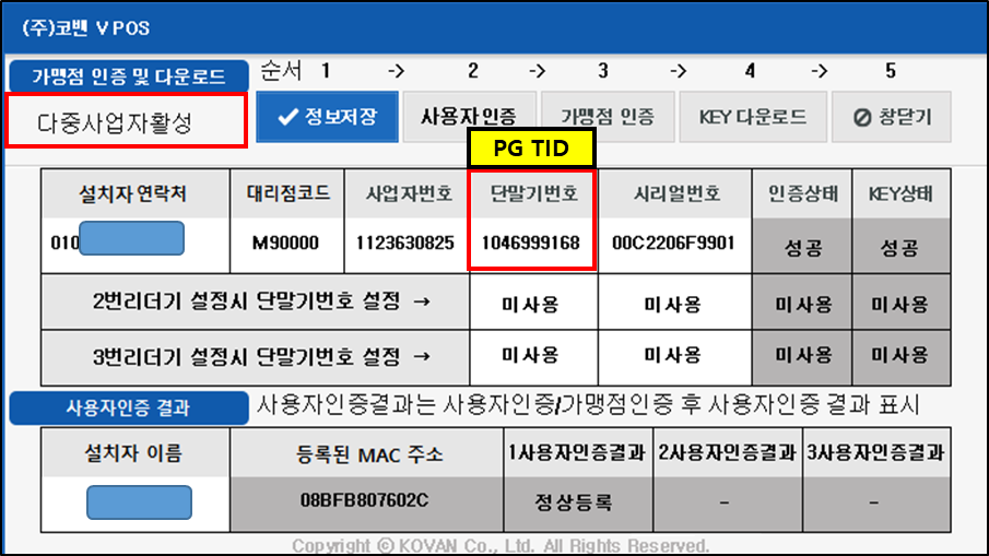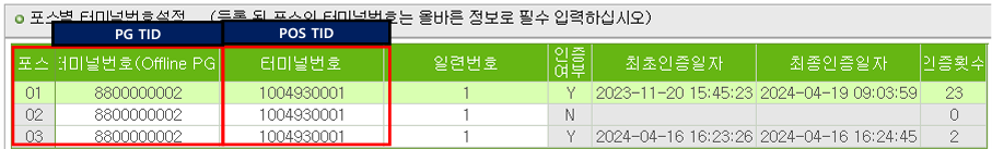 KOVAN AGENT > ๋จ๋ง๊ธฐ์ธ์ฆ > ๋จ๋ง๊ธฐ๋ฒํธ์๋ PG TID ์ ๋ ฅ (VAN ์ ์ฐ์ PG TID + POS TID ์ฐ๊ณ ๋ฑ๋ก ํ์)