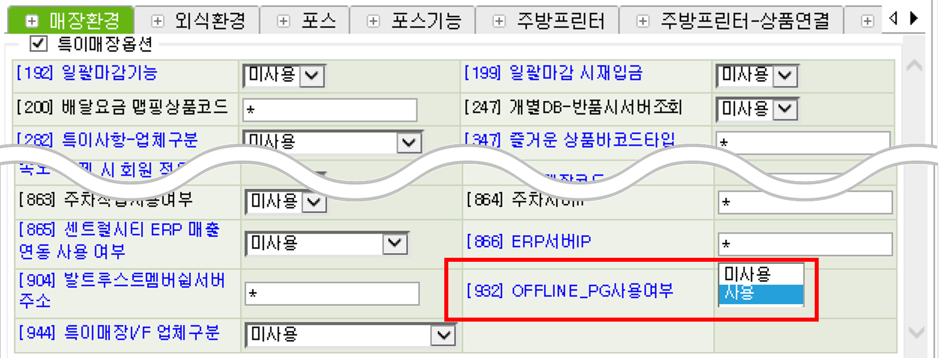 ๋งค์ฅํ๊ฒฝTab > ํน์ด๋งค์ฅ์ต์ > [932] OFFLINE_PG ์ฌ์ฉ์ฌ๋ถ-โ์ฌ์ฉโ