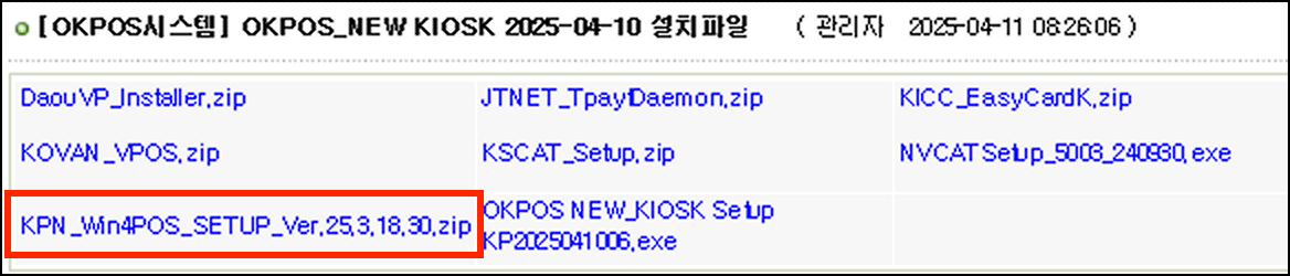 ์ ์ฉ๊ฒ์ํ > OKPOS_NEW KIOSK ์ค์นํ์ผ ๊ฒ์๋ฌผ ํด๋ฆญํด ์ฃผ์ธ์.