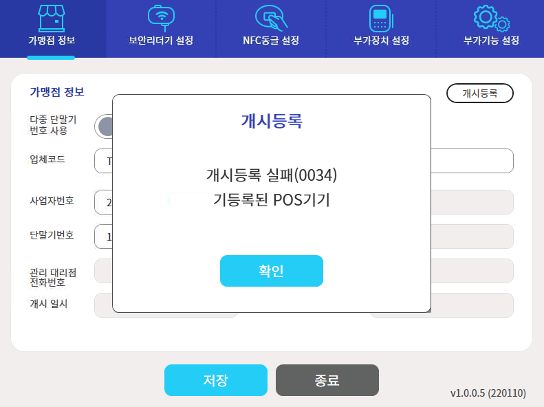 "๊ฐ์๋ฑ๋ก ์คํจ ๊ธฐ๋ฑ๋ก๋ POS๊ธฐ๊ธฐ"๋ฐ์ ์, KCP ๋ณธ์ฌ๋ก ๋ฌธ์ํด ์ฃผ์ธ์.