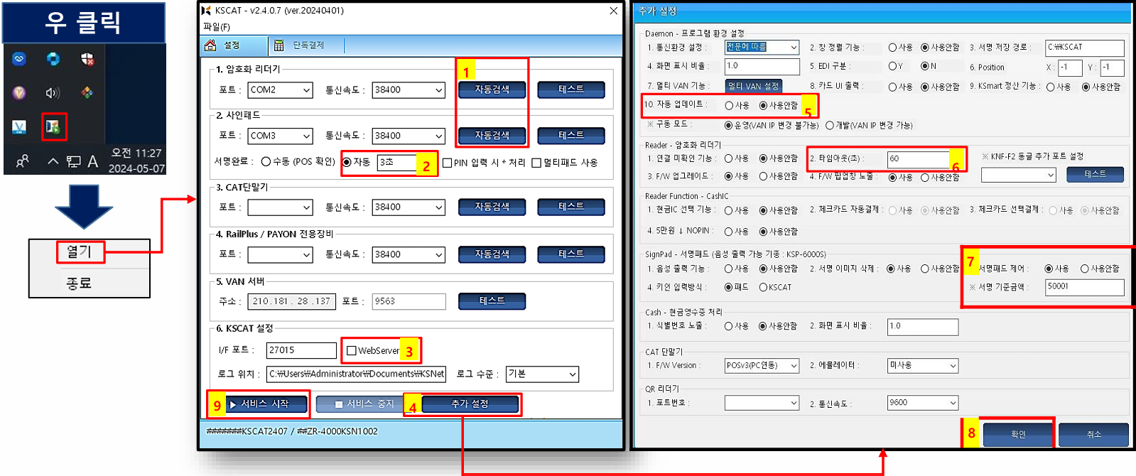 KSNET VAN์ ํฌ์คํ๋ก๊ทธ๋จ > ํ๊ฒฝ์ค์ > ๋จ๋ง๊ธฐ์ธ์ฆ ๋ถํ์!!
